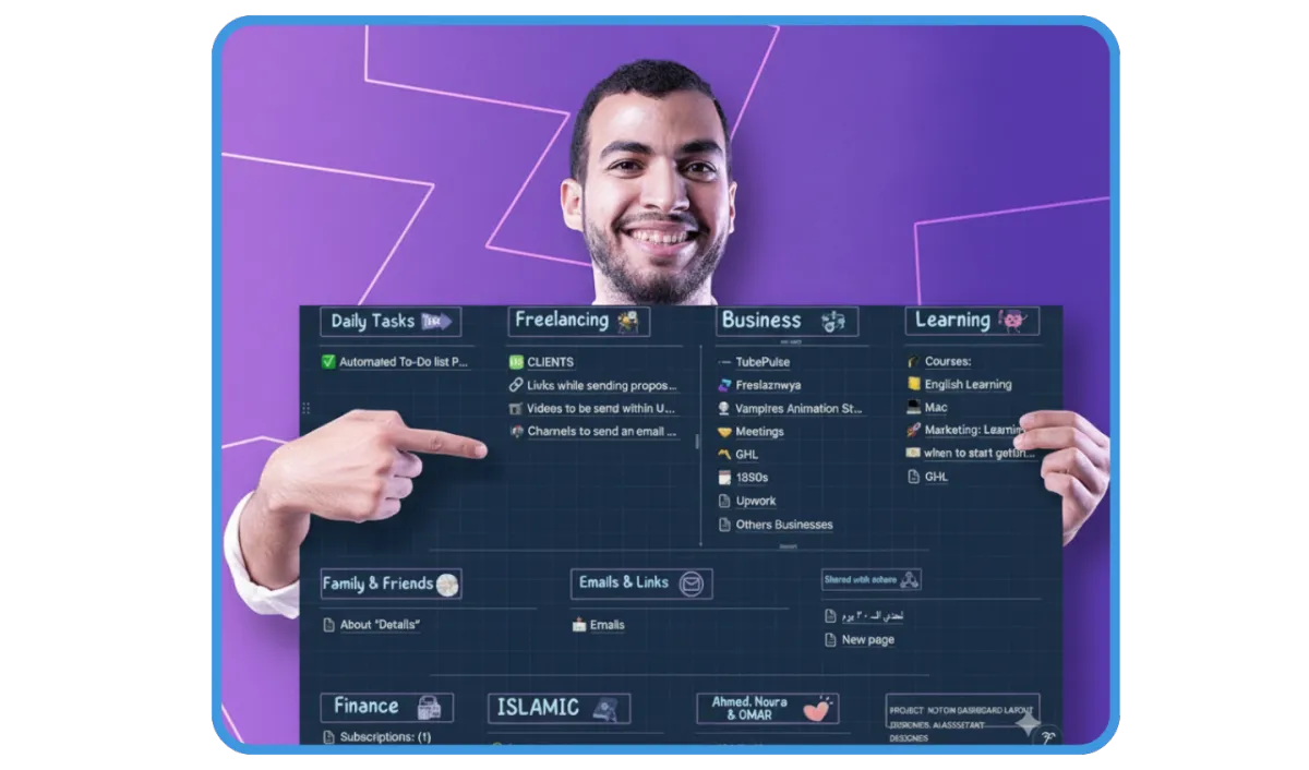 نموّ مشروعك مرتبط بقوة الأنظمة اللي بتشتغل عليها، وعشان كده صممتلك قالب جاهز علي Notion هيختصر عليك رحلة طويلة جدا من العشوائية، وهينظملك حياتك كلها فى مكان واحد بإذن الله