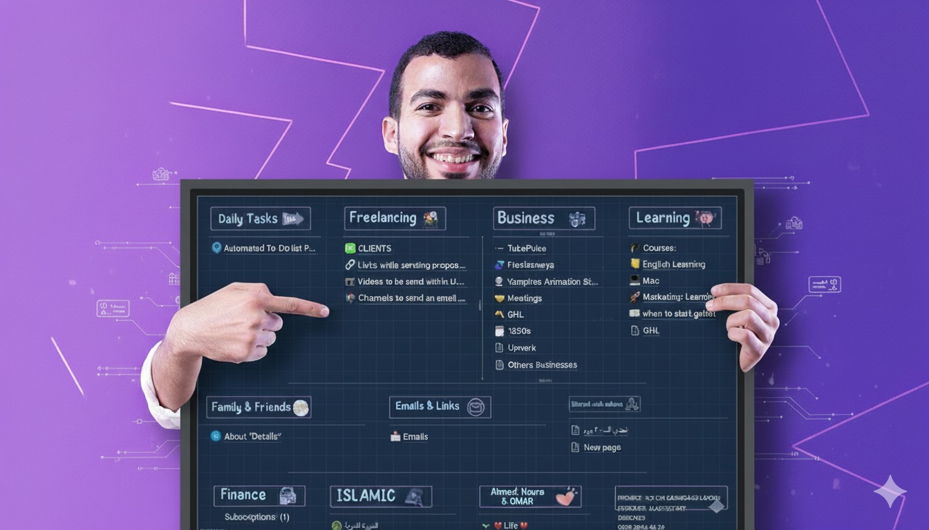 هتلاقي فيها رحلة تعليمية خطوة بخطوة، بتوضحلك إزاي بدأت أبني السيستم بتاعي بنفسي، وإزاي ظبطت كل شغلي ليا وللعملاء عشان يوصل لأقصي درجة من النظام بحيث يسهّل عليا كل حاجة